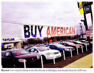 Cars may be sitting on lots like this one in Michigan, but should sell as the GDP rises.